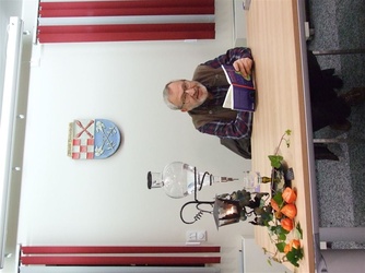 Nun konnte Günter Huth die volle Aufmerksamkeit der Besucher für die Vorstellung der Protagonisten seiner Krimireihe „Der Schoppenfetzer“ nutzen. Der pensionierte Kommissar Erich Rottmann, sein Hund mit dem passenden Namen „Öchsle“ und die liebevolle Rathaus-Reinemachefrau Elvira Stark begleiten den Leser nämlich nun bereits durch den 15. Band dieser in Franken so beliebten Serie. „Der Schoppenfetzer und der Narrenwein“ so heißt das neueste Buch und Günter Huth las an diesem Abend geschickt gewählte Auszüge daraus.