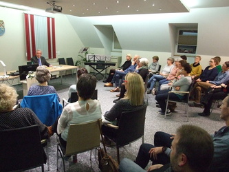 Dann hieß die Leiterin der Bücherei Burkardroth, Elisabeth Kuhn, den Bad Kissinger Literatur-Kenner Sigismund von Dobschütz willkommen, der sich bescheiden keinesfalls als ausgewiesenen Fachmann vorstellte, sondern als einfachen Freund gehobener Literatur, der es sich zur Aufgabe gemacht hat, seiner Ansicht nach guten Lesestoff möglichst vielen Menschen vorzustellen und nahe zu bringen.